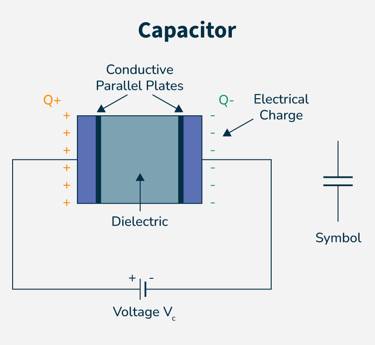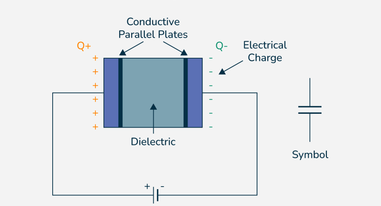 Capacitor is a passive electronic component that is used to store electrical charge for short time. In capacitors, the energy is stored in the form of holding electrons(electric charges) in an electric field. It is used in the process of storing short term electricity, filtering, rectifying circuits & compensation. It consists of two (conductive) metal plates separated by insulating material known as dielectric. The dielectric materials may be paper, glass, metal film, mica, air, vacuum etc.